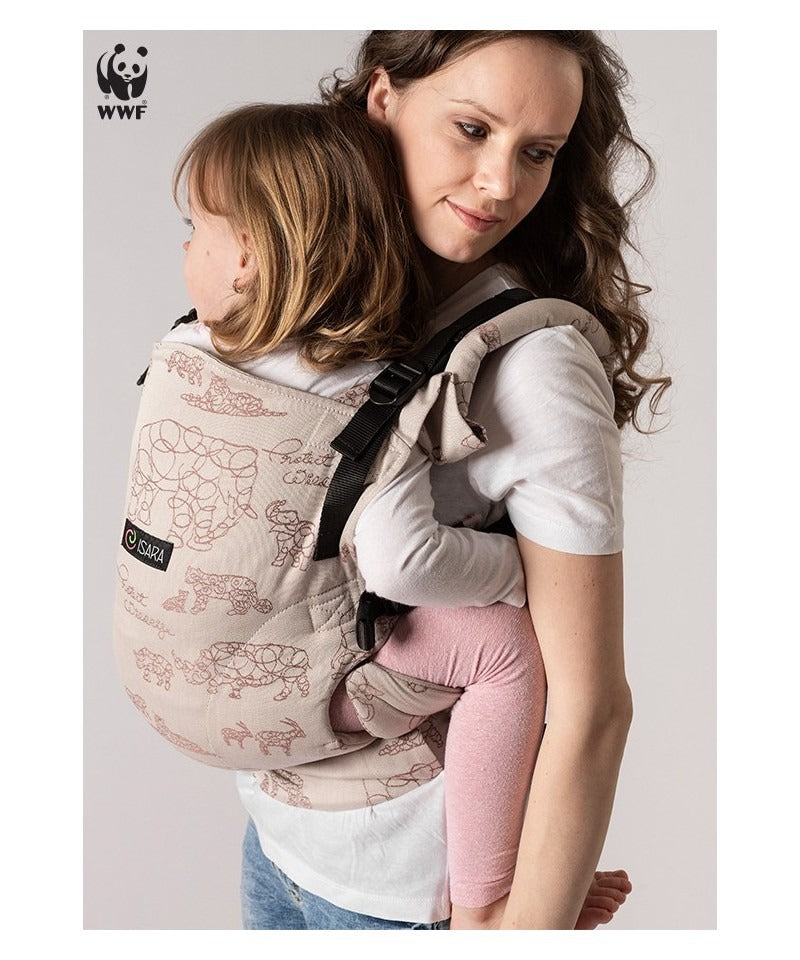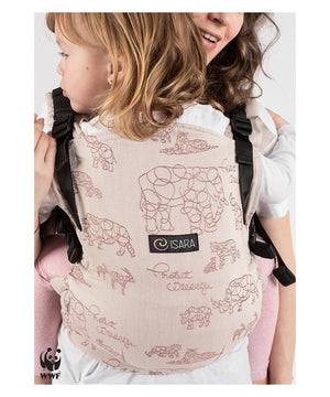 ISARA The ONE er en revolusjonerende, justerbar bæresele i én størrelse som passer alle foreldre – fra petite til høy eller pluss-størrelse – og vokser sammen med barnet, fra nyfødt til slutten av førskolealderen.