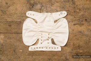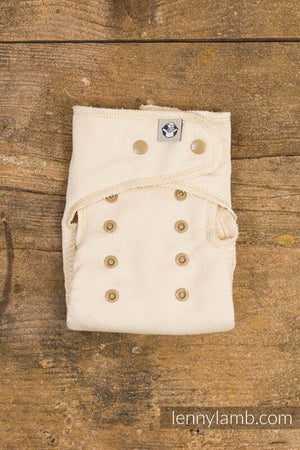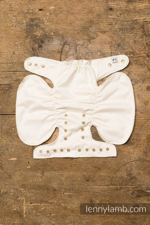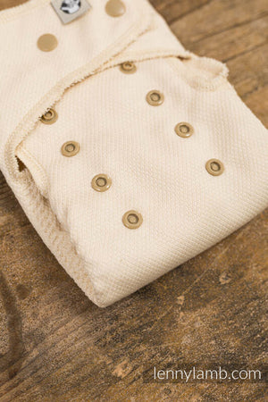 Denne tøybleien er skreddersydd for å imøtekomme behovene til aktive babyer fra 3 til 12 måneder, avhengig av babyens kroppsbygning. Denne bleien gir komfort og pålitelighet for babyer som har en klesstørrelse fra fødsel til omtrent 68-74/80 (29-31’’) og veier fra ca. 5 kg til 8.5 kg (11-18 lbs), alt avhengig av babyens kroppsbygning.
