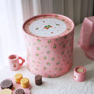 Settet består av en liten kaffemaskin laget av tre, med en rekke forskjellige funksjoner og aktiviteter.