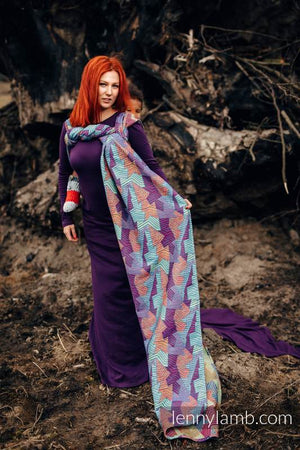 Bredden på bæresjalet er omtrent 60-70 cm, tilgjengelig i størrelser 4 (XS, 3,6 m) til 8 (XL, 6,0 m) i lengde. Dette gjør det egnet for personer med forskjellige størrelser og figurer. Velg riktig størrelse for en perfekt passform og optimal komfort.